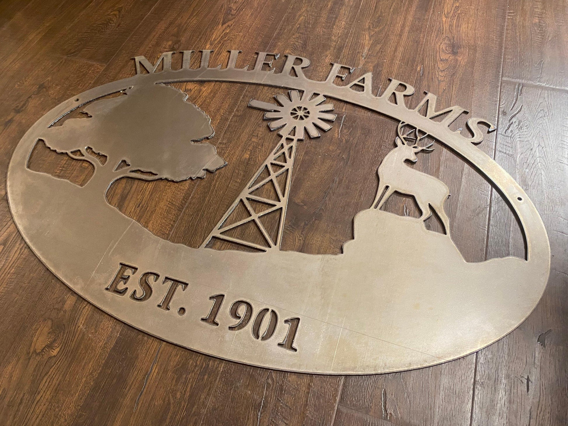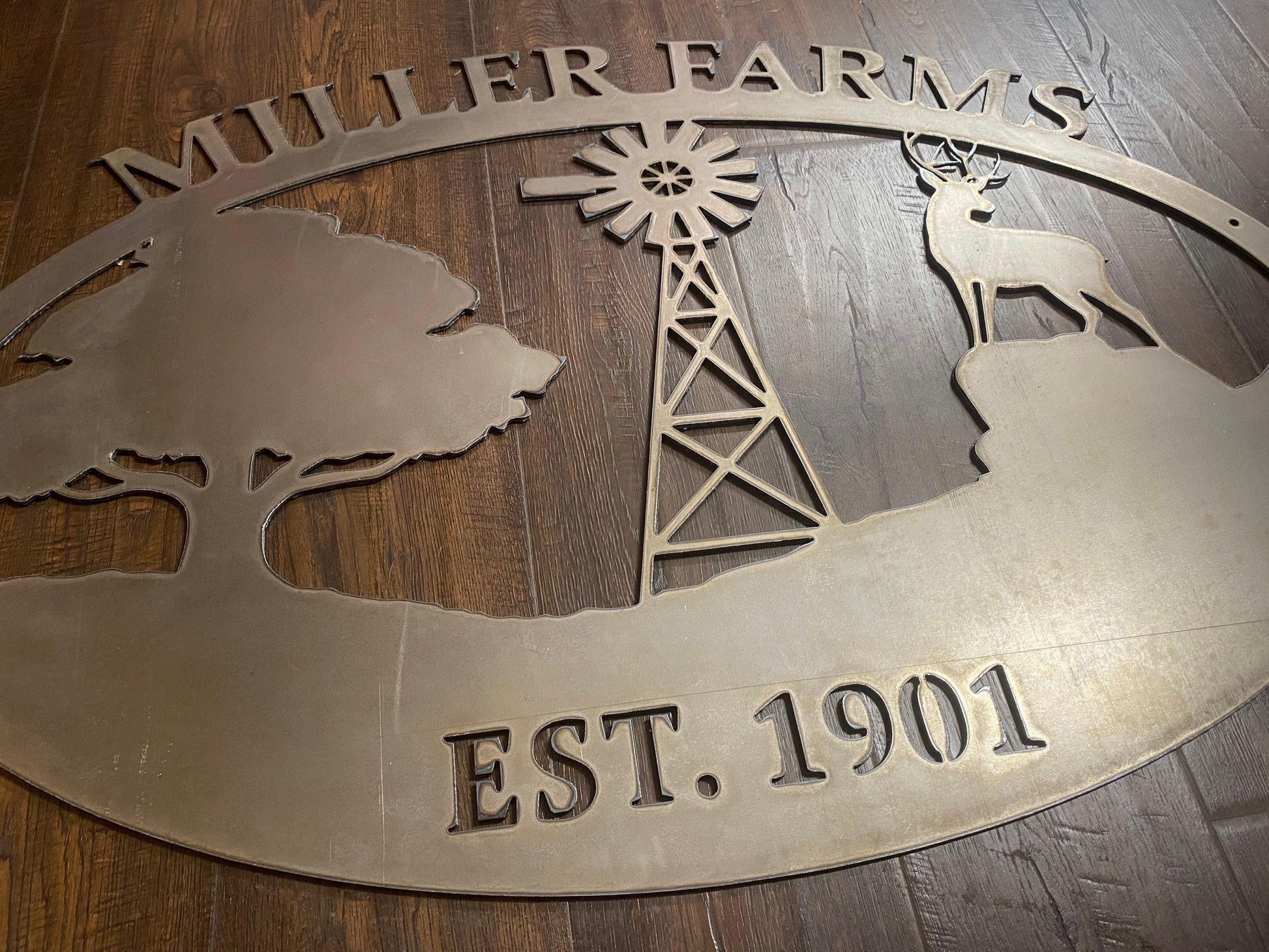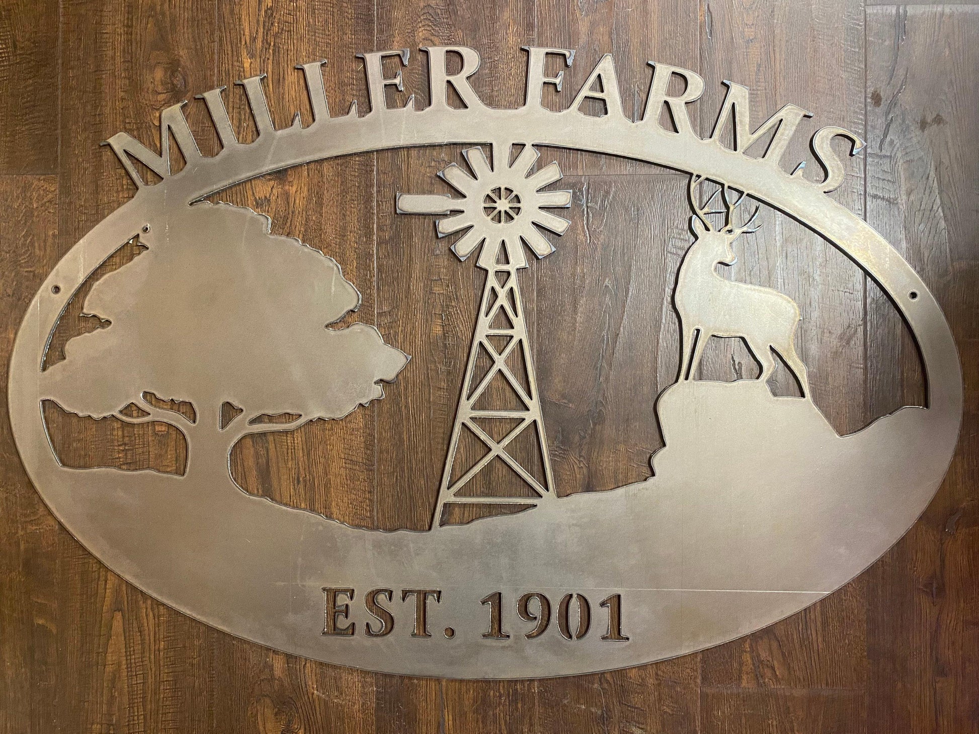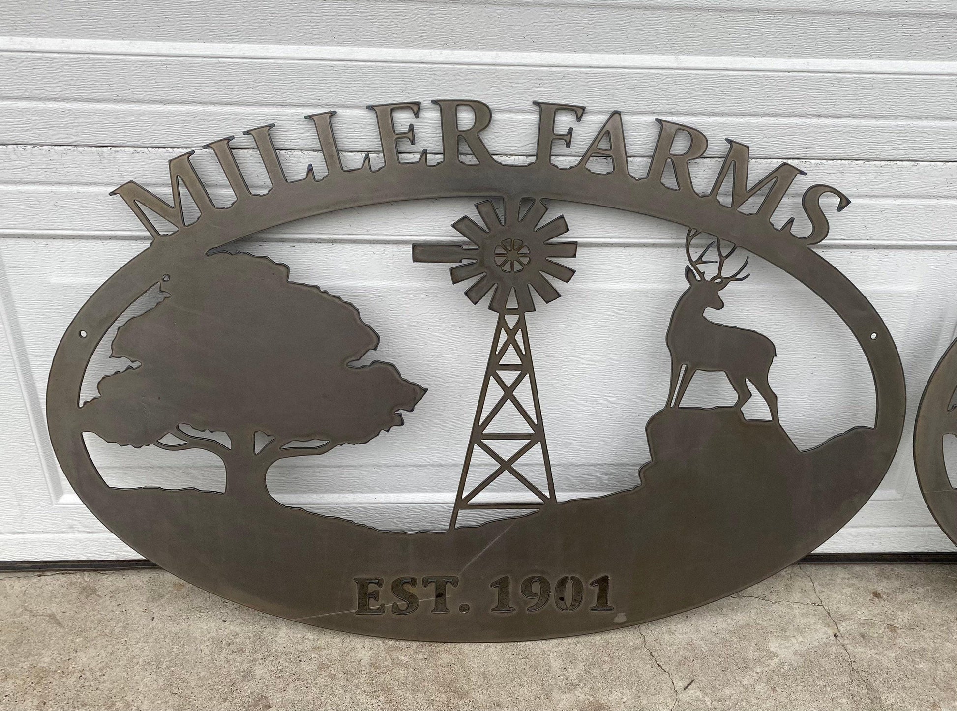 Farm & Ranch Sign - Tree, Windmill, Deer - Personalized Steel Sign - Metal Art- OV24-36