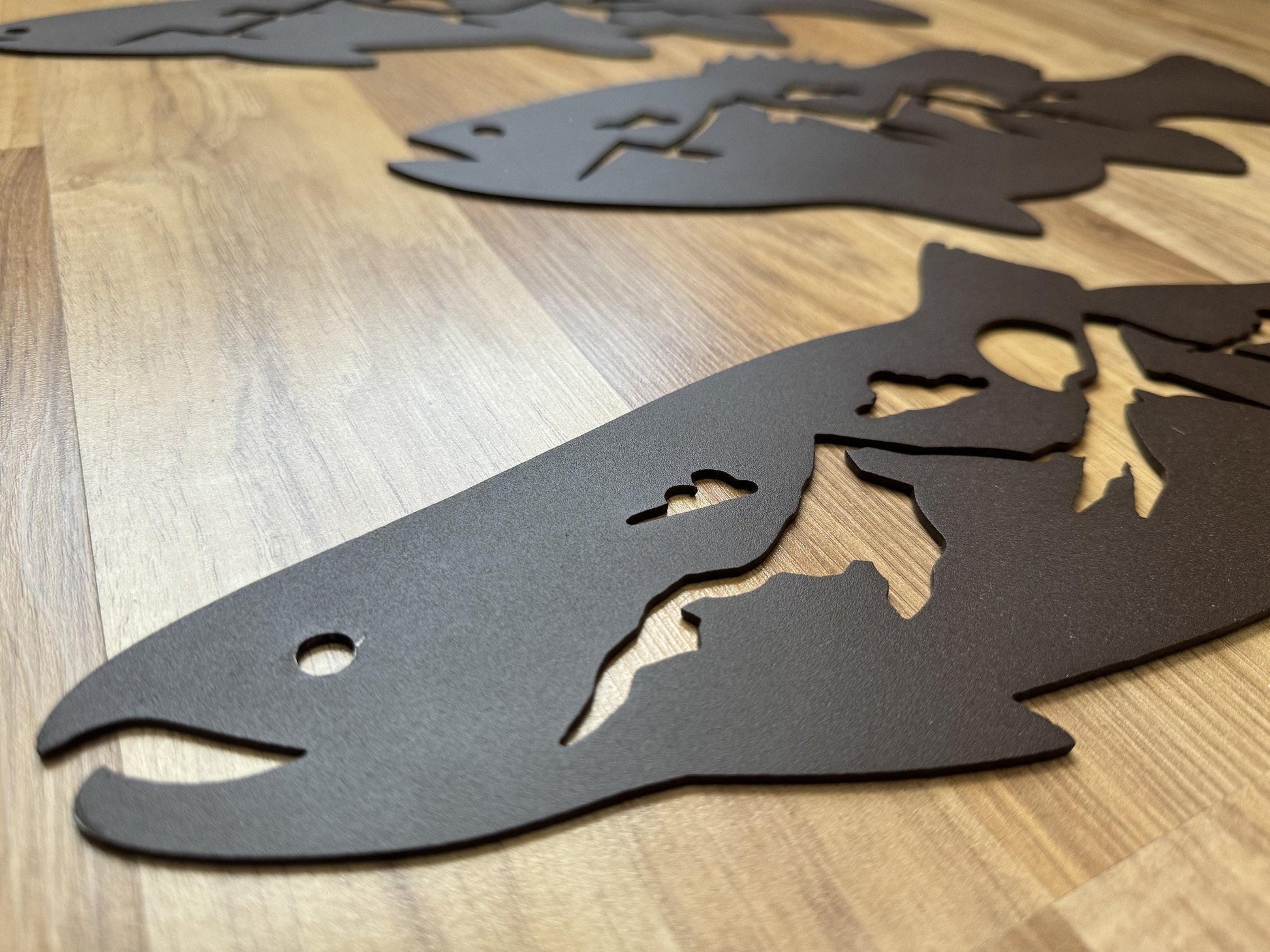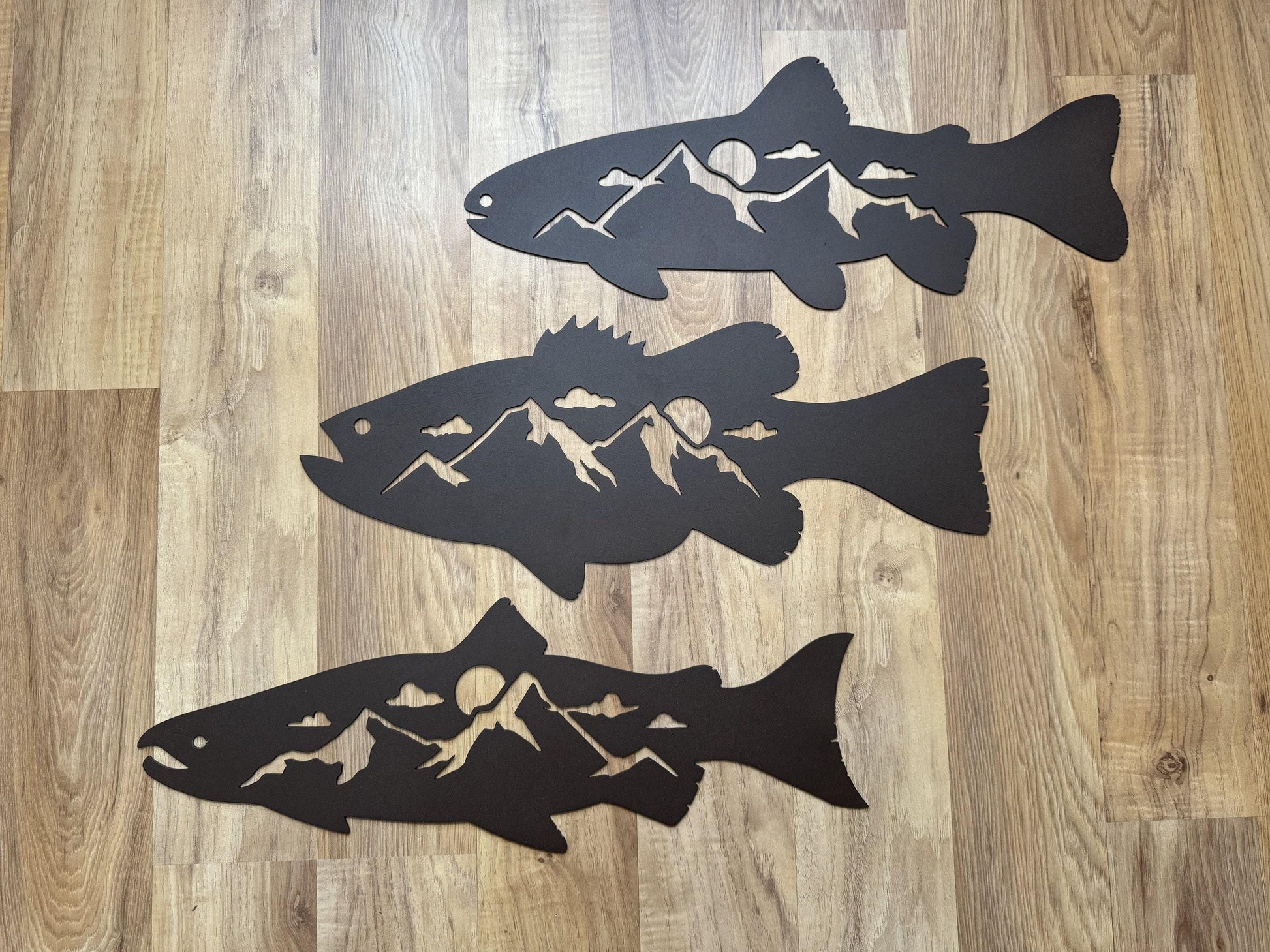 Fish Mountain Scene Metal Art - Trout, Bass or Salmon - Steel Signs - OV18-36
