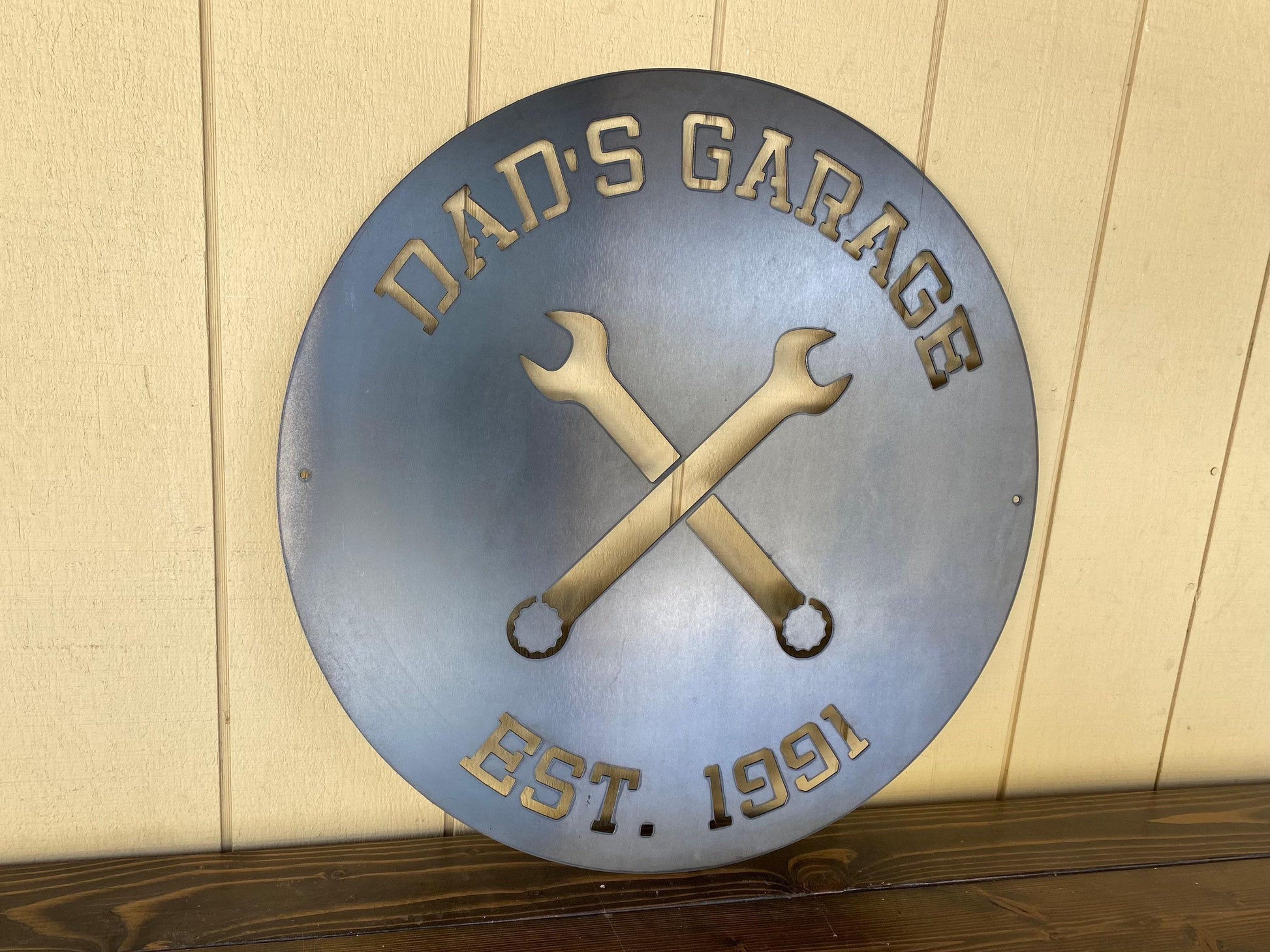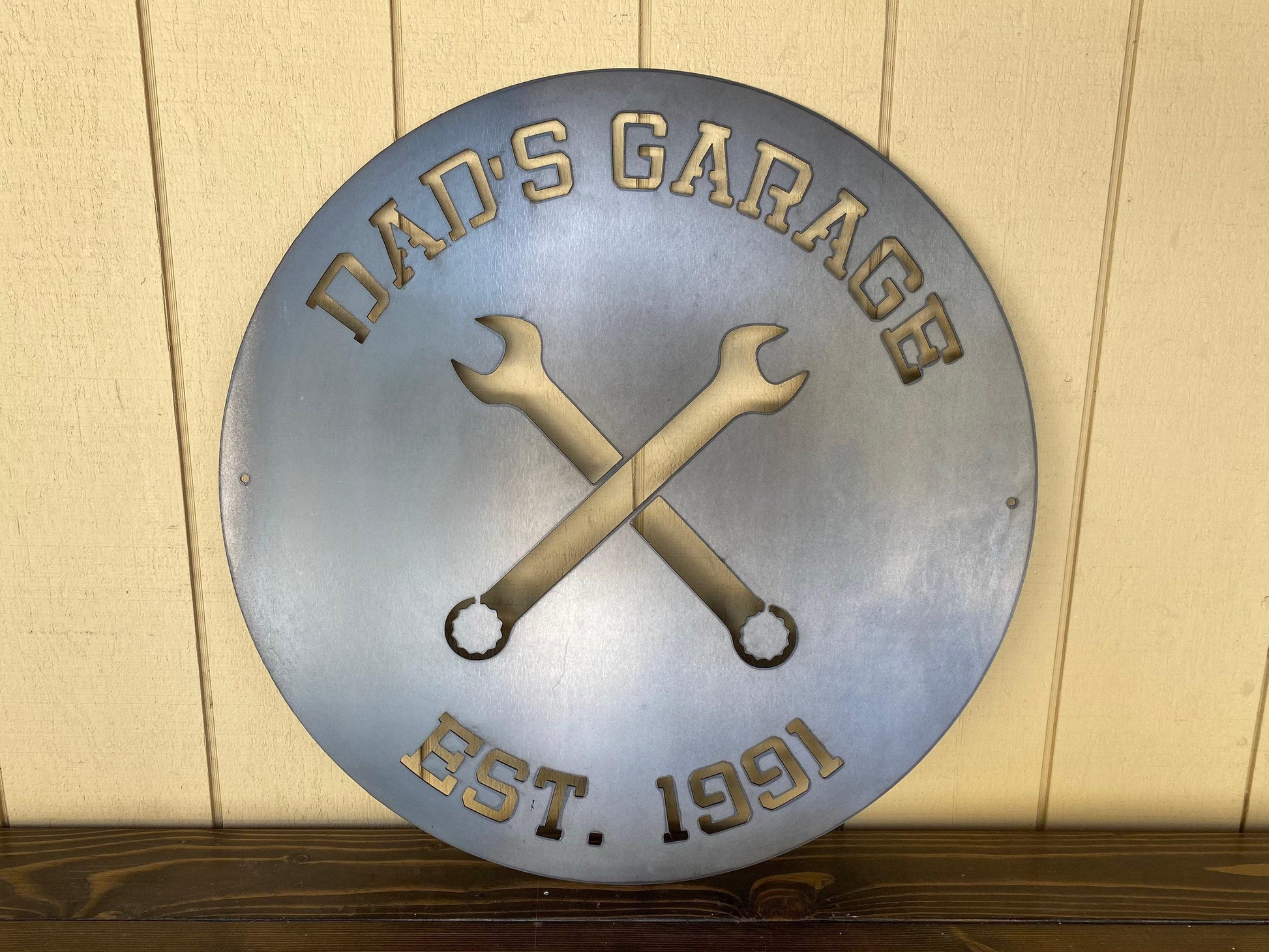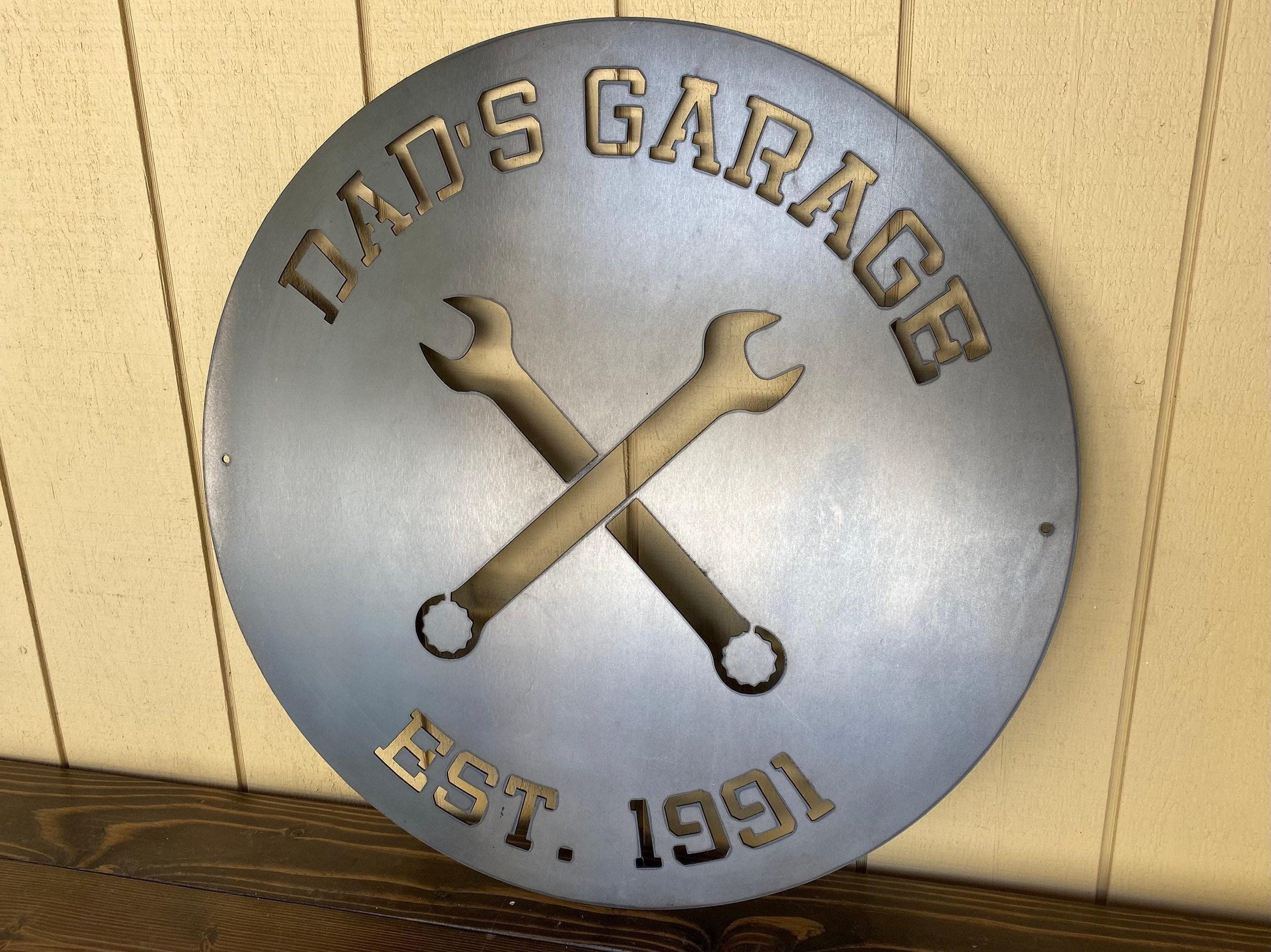 METAL GARAGE Sign - Dad’s Garage - Personalized Steel Sign - Wall Art - SQ18-36