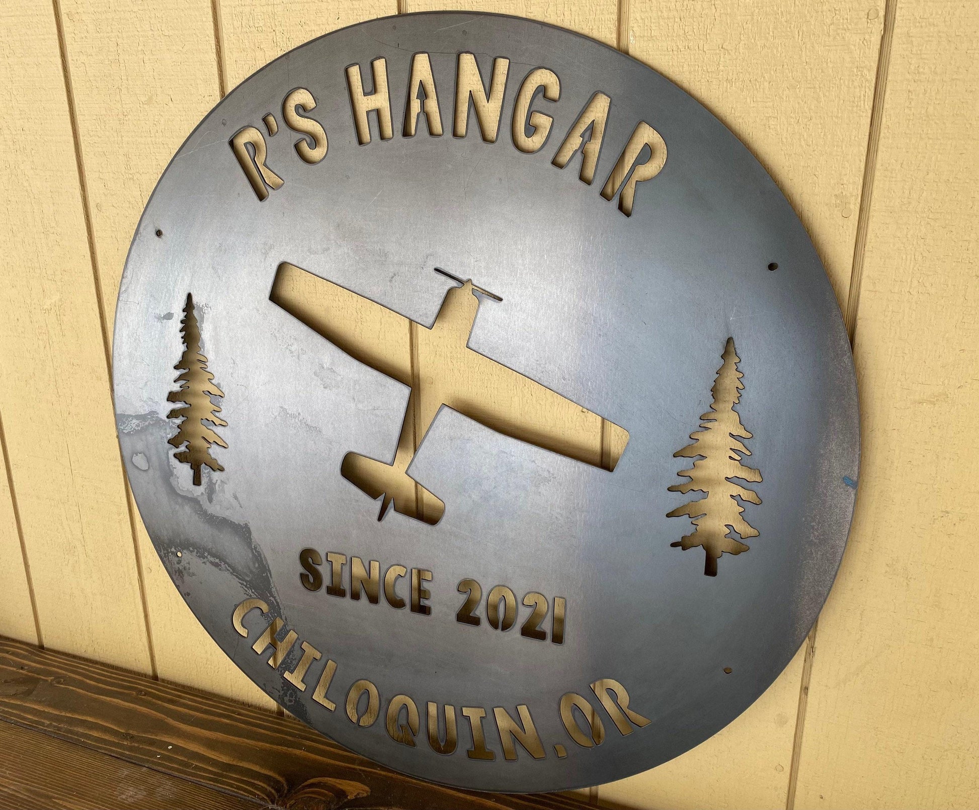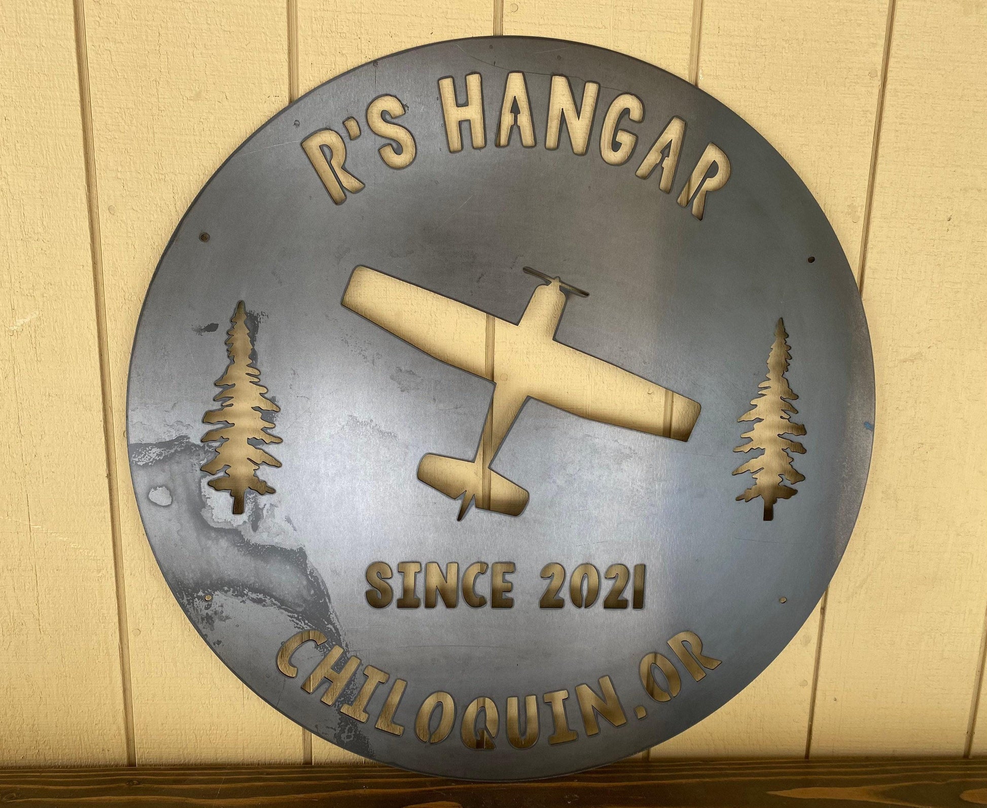 METAL HANGAR Sign - Airplane Hangar - Personalized Steel Sign - Wall Art - SQ18-36
